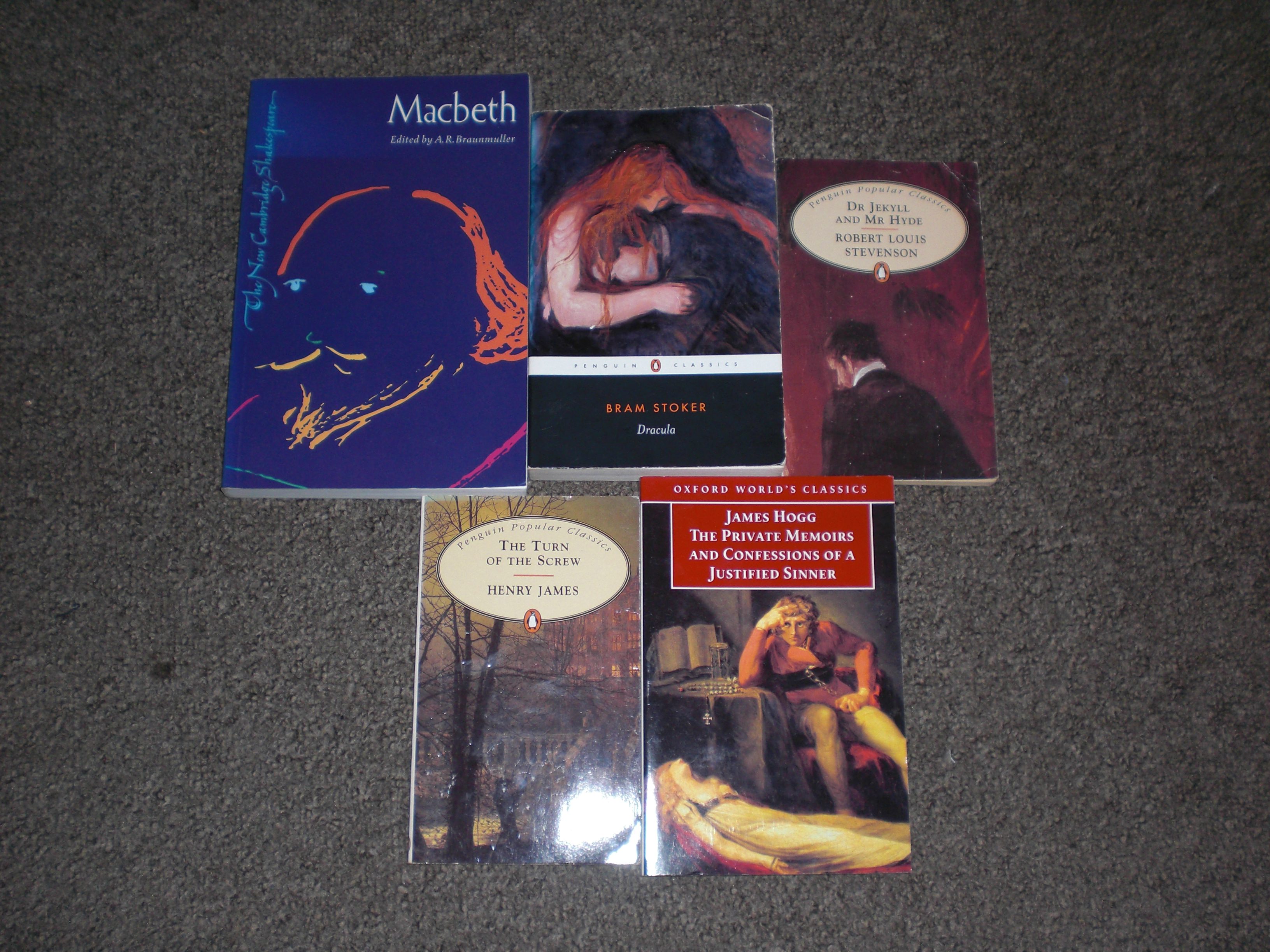 Gothic Fictions: Shakespeare – Macbeth, Bram Stoker – Dracula, Robert L. Stevenson – Dr. Jeckyll & Mr. Hyde, Henry James – Turn of the Screw, James Hoagg – Confessions of a Justified Sinner